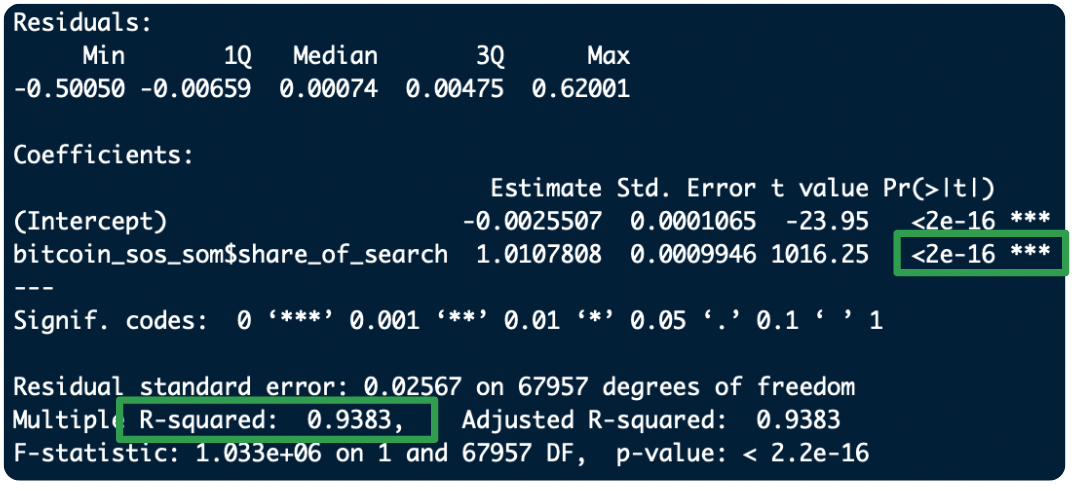 In established markets the share of search indicator has proven itself to be of predictive value for the share of market of a brand or company. Using similar methods, this indicator has been applied to the crypto market with significant results.